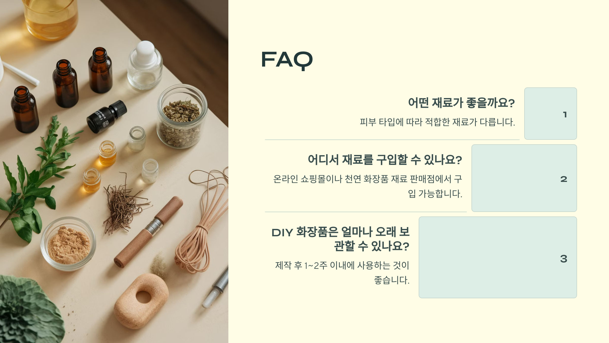 Q1. DIY 화장품은 얼마나 오래 사용할 수 있나요?