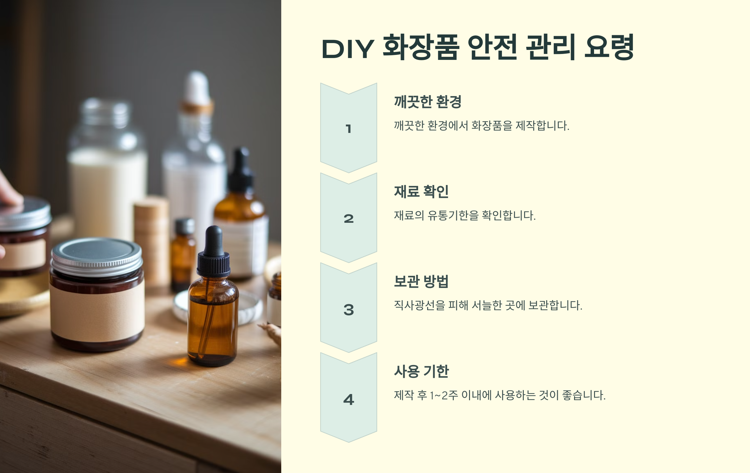 DIY 화장품 제작 과정은 다음 단계를 따르세요: